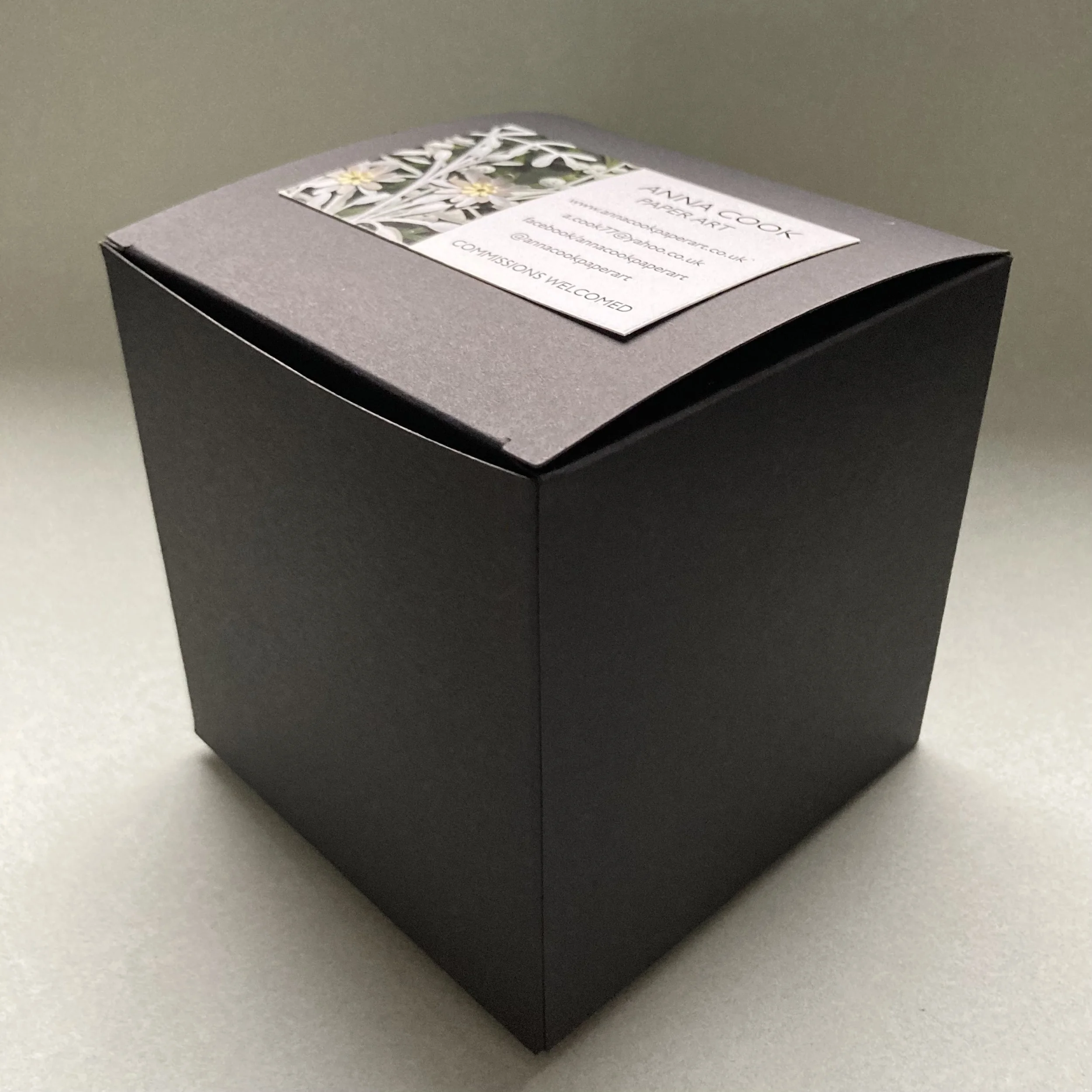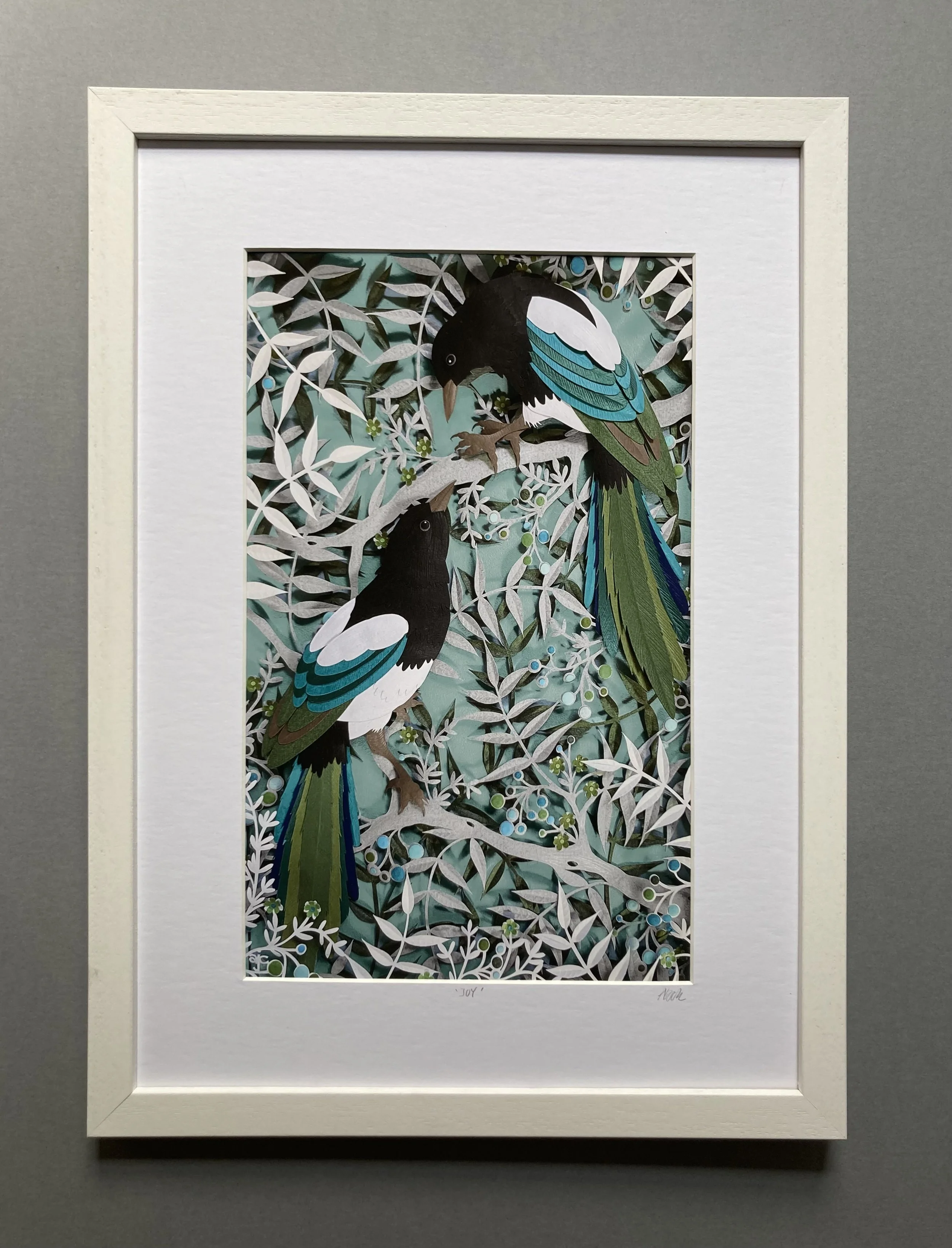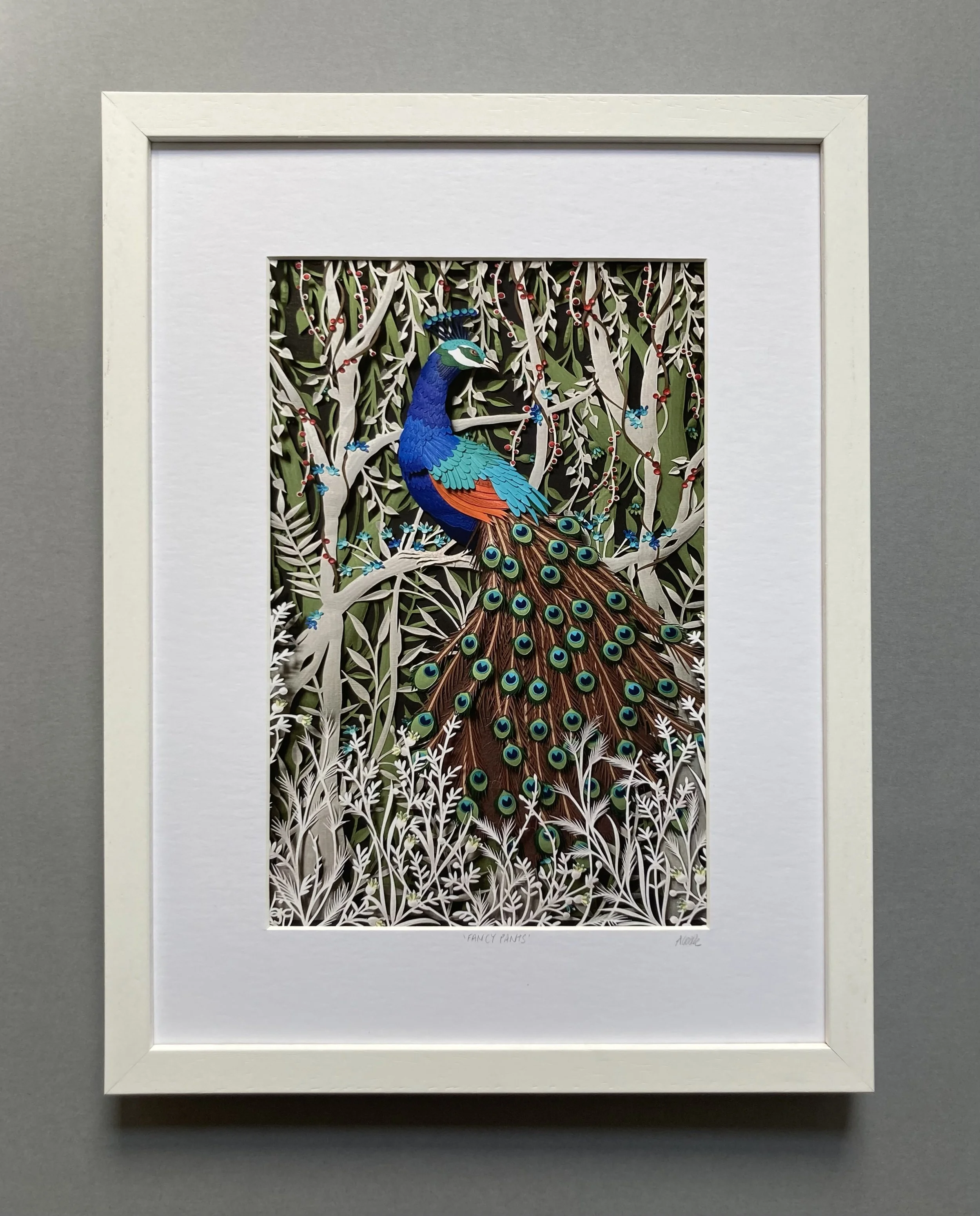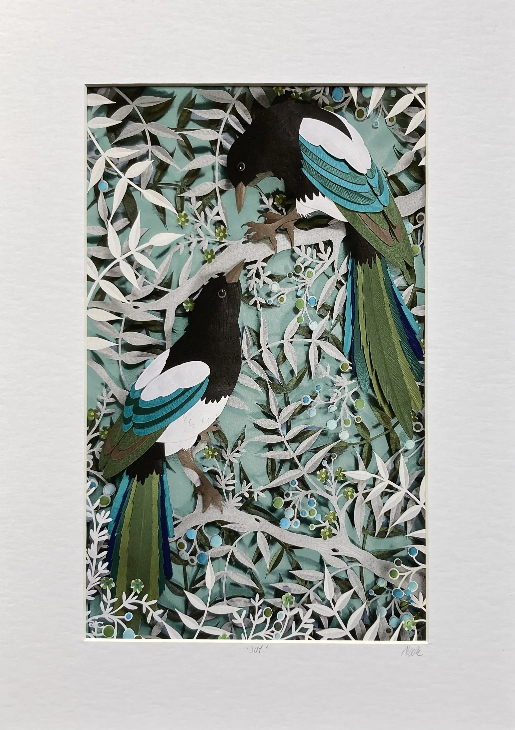 All my work starts out life as a unique paper cut. The Originals on this site are scalpel cut, one off designs. All the other products are scanned and laser cut from the originals then hand finished to produce mounted limited edition prints, cards, lanterns and other papery items